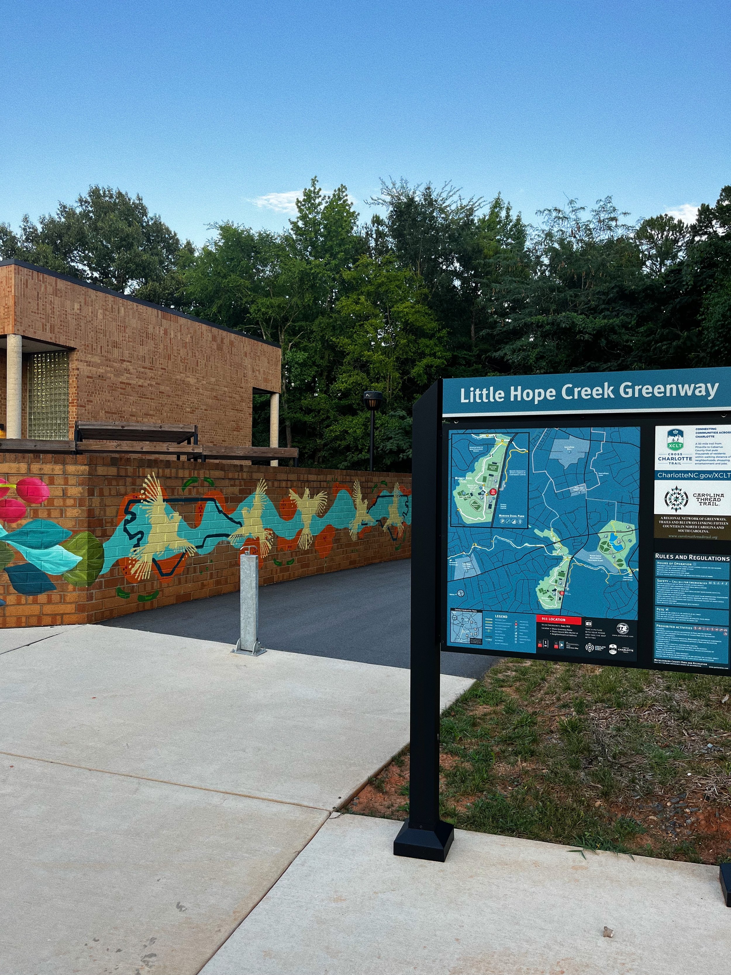 Hired by Charlotte is Creative, I created a communal mural for the Marion Diehl Recreation Center in Charlotte, NC. Inspired by the surrounding nature and theme of interconnectedness, this piece is a celebration of South Park’s charm.